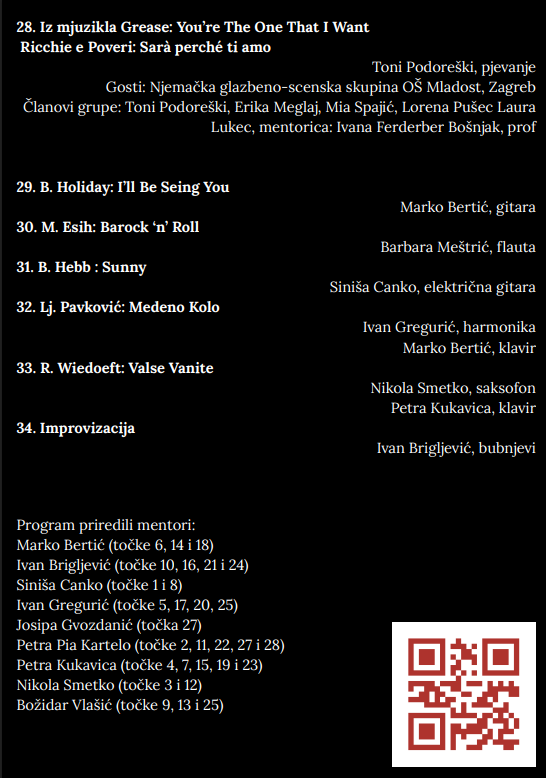 Odaziv publike bio je vrlo velik, a svi gledatelji su imali prilike poslušati što su naši polaznici naučili kroz ovu školsku godinu, ali i kod pojedinih polaznika i kroz samo par mjeseci rada.