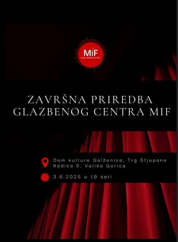 Nakon nekoliko mjeseci napornog vježbanja, polaznici MIFa bili su spremni nastupiti na završnom godišnjem koncertu koji je održan u utorak 3.6.2025. u Domu kulture Galženica u Velikoj Gorici.